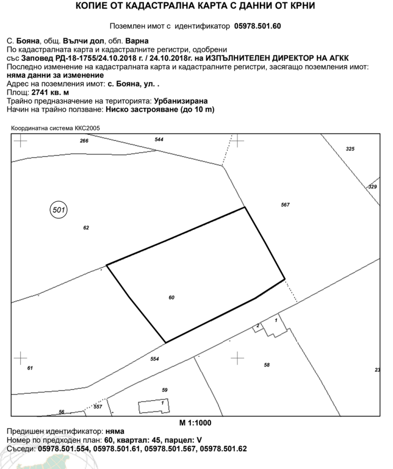 Имотът е отреден за жилищно строителство.